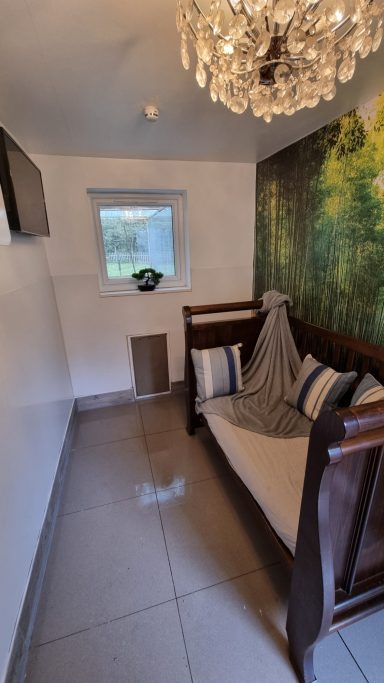 Here you can find images of our hotel including exercise spaces and its rooms. Whilst not every room has a wall mural, they each have double glazed doors and windows, their own courtyard, chandelier lighting, bed/cot, cctv and smoke alarm. We make sure guests have access to water at all times.